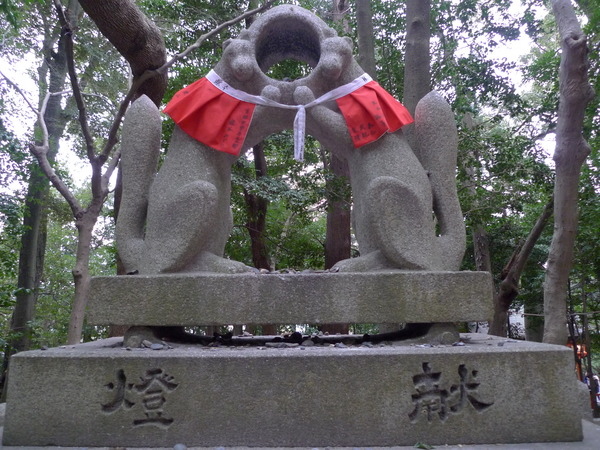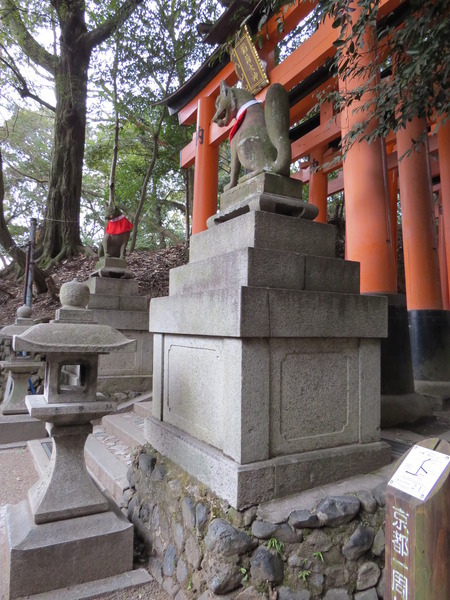 「狐狸」是「稻荷神」的信差(詳情見wiki稻荷神),所以「稻荷神社」的守護獸都是「狐狸」,「眼力社」前的這隻姿勢尤其特別。