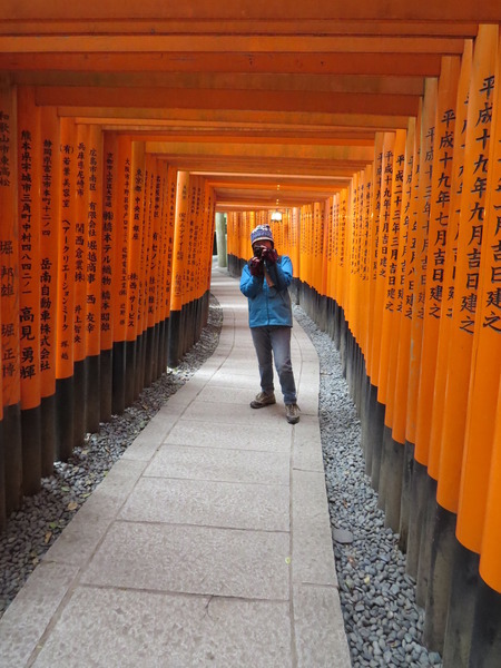 但是都非常密,完全鑽出鳥居間的縫隙拍照取景,只好手拿相機伸出鳥居外亂按亂拍。