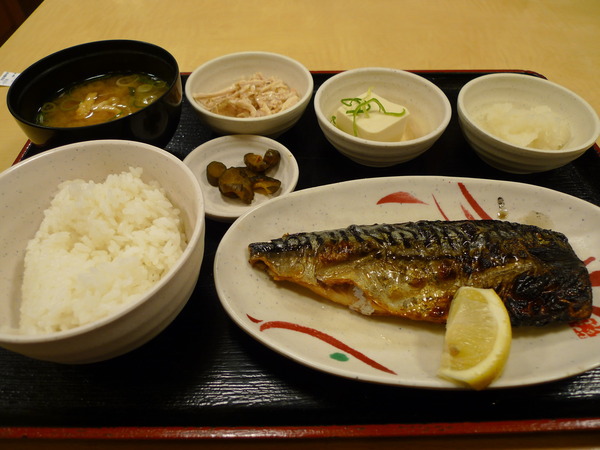 烤鯖魚(塩サバ)定食~590円。