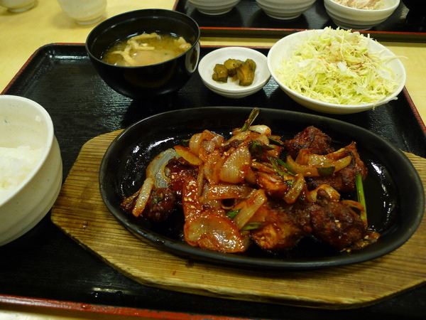 雞肉炒麵定食(鶏のコチジャン炒め)~人氣商品,690円。