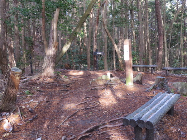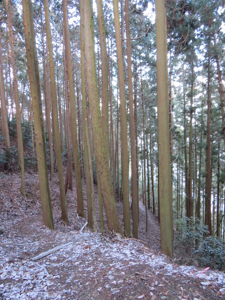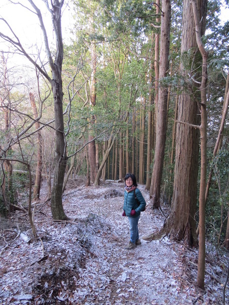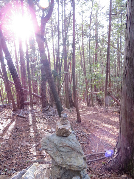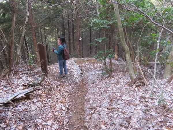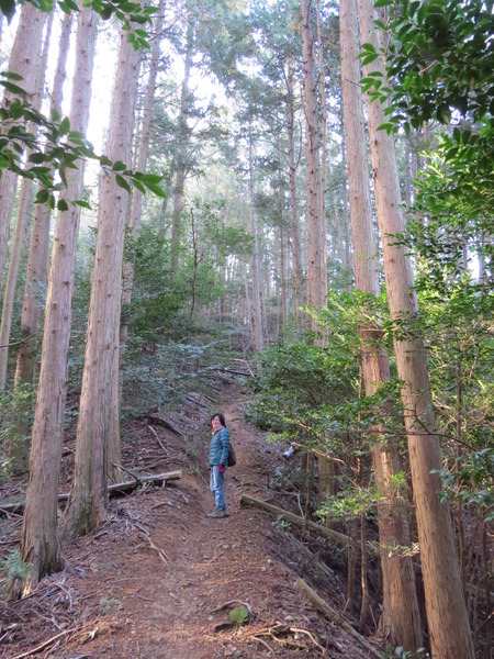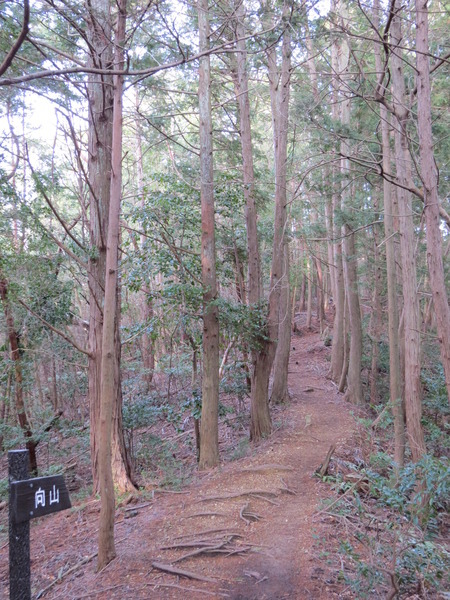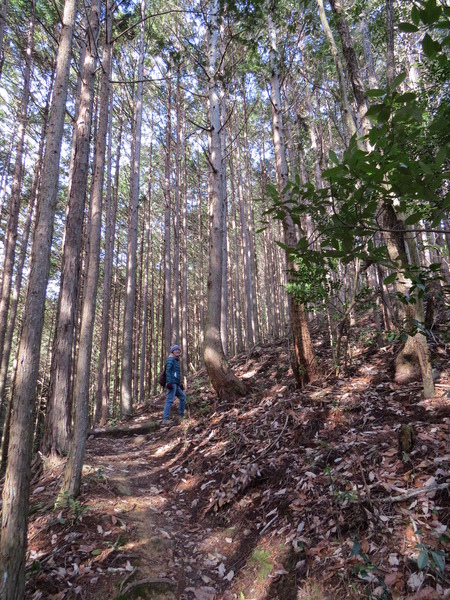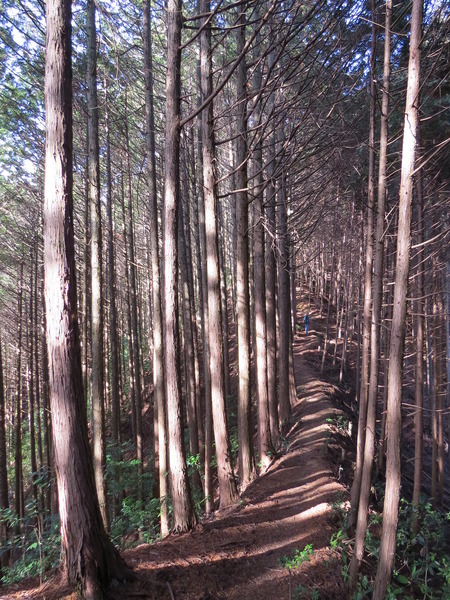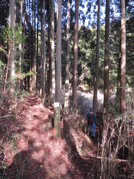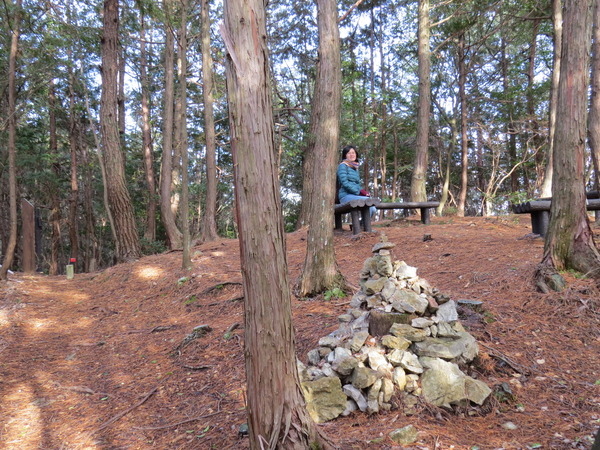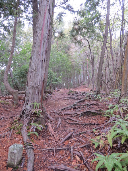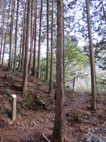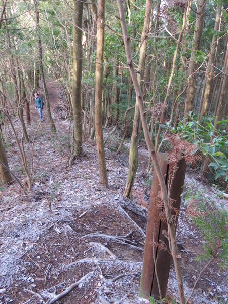 連續上坡後,短暫平緩,地上一棵京都市地界樁,林相不再是單純的「北山杉」。