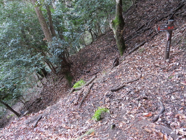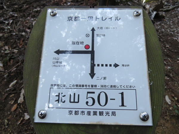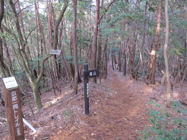 左邊岔路是沿著「雲畑街道」馬路通往「山幸橋」附近的「東海自然步道」,同時也是「京都一周步道」的舊路線;「新路線」改走「向山登山道」,距離比較近,但是比較陡。