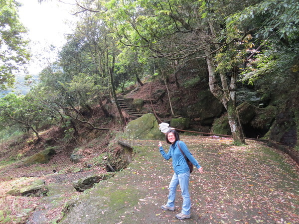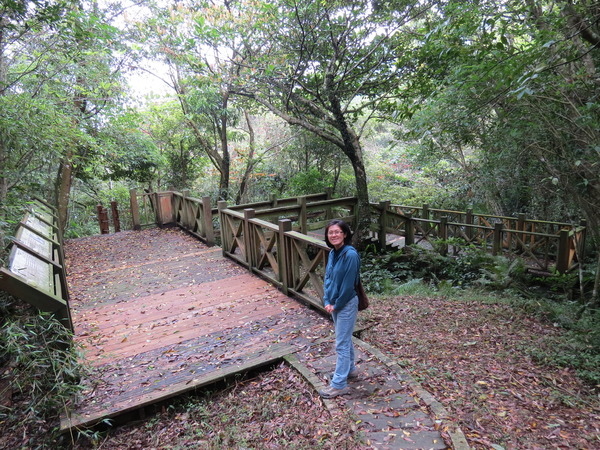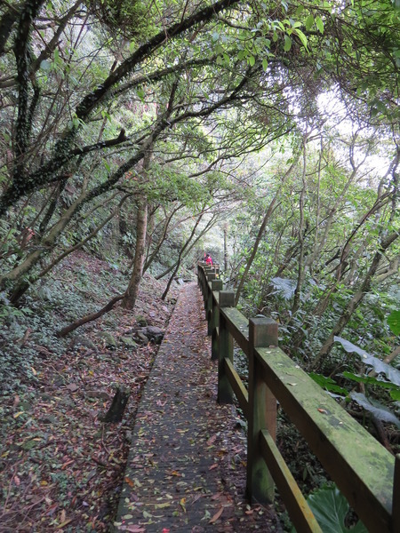 14:05 休息五分鐘,我們沿著鋪了木棧道的「古道」回「獅尾登山口」取車,一路下坡,非常輕鬆,但要小心濕滑。