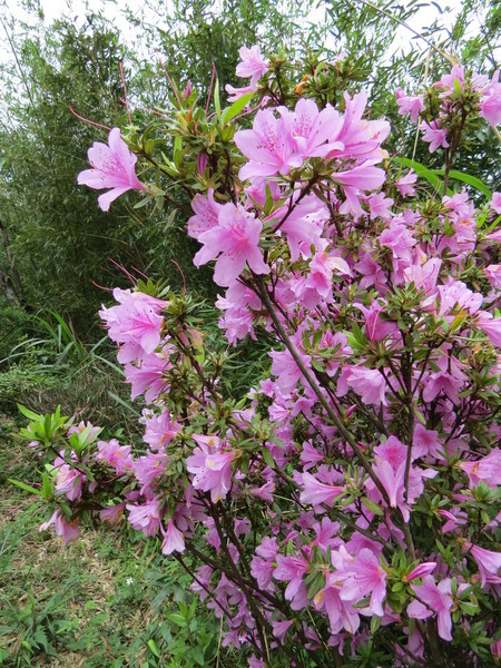 才剛開始走,就看到路旁開滿了粉紅杜鵑,花型小,葉子有金色細毛,我們一時以為這就是「金毛杜鵑」。