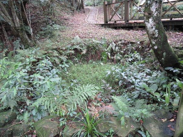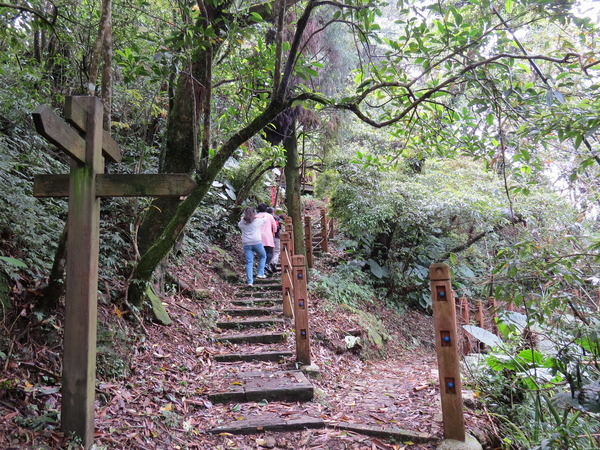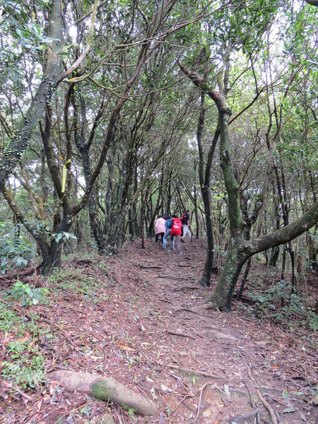 遇到岔路,我們選擇往上,其實殊途同歸,前幾天下雨,山徑有點兒濕滑。