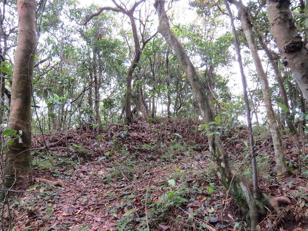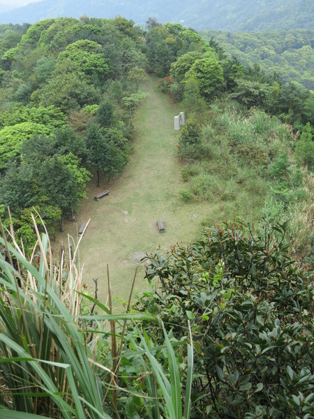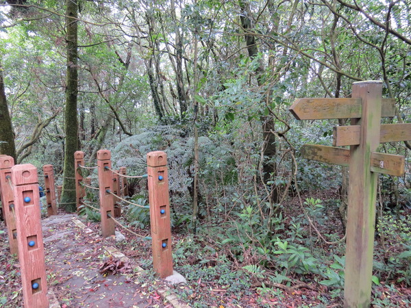 從壕溝對面的小徑可達「石寮遺址」,然後循著「支線」進入「金毛杜鵑」的精華區,接回主線,這樣路線精彩又不重複。但是因為沒有指標,我們沿著木棧道走。