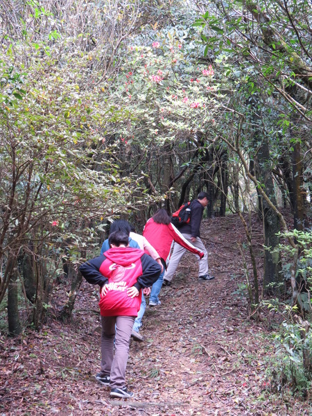 13:05 跟著「防番古碑」指標彎進窄窄的「支線」,果然是「金毛杜鵑」的精華區,經常遇見盛開的磚紅杜鵑。
