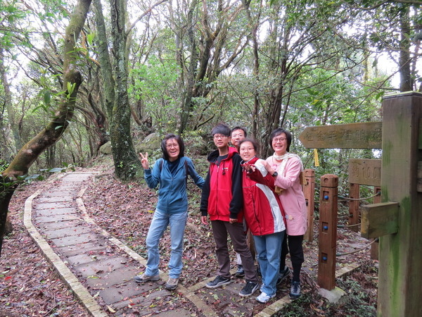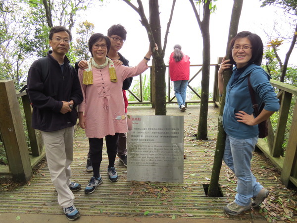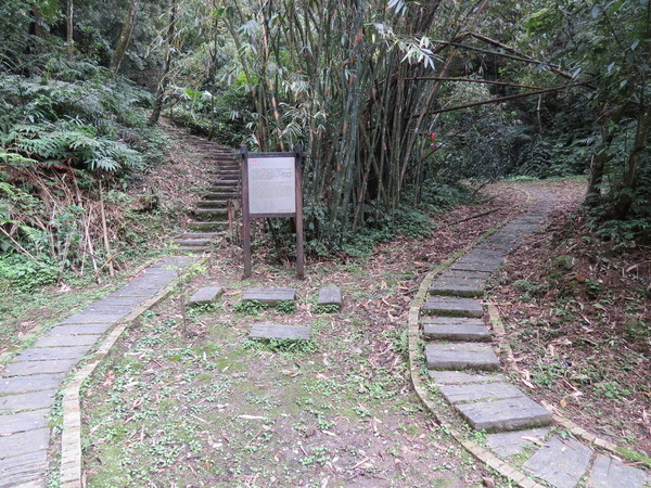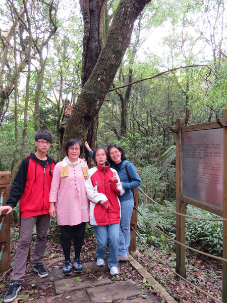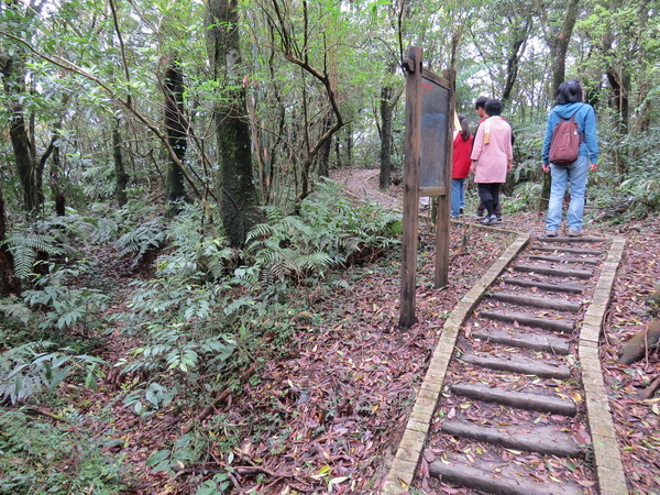 解說牌:這裡屬於「雪山山脈」的支脈~「插天山系」和「台北盆地」的「尾稜」之間 ,雖屬闊葉林帶,但是迎風多霧,具有中海拔針葉林相,寒冬時偶會結霜飄雪。真的還假的?下次寒流來襲就可以來這裡賞雪了!