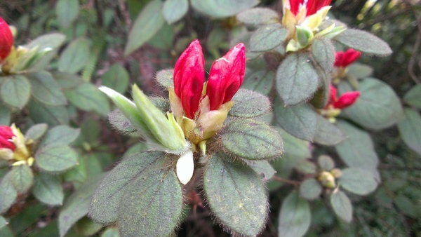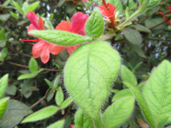 葉子摸起來毛茸茸的,難怪叫做「金毛杜鵑」。