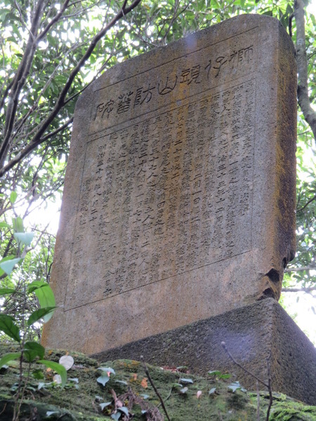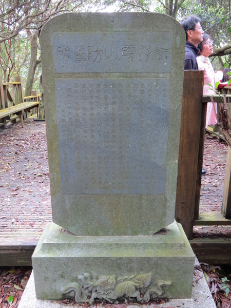 下坡路上,回頭仰望真正的「防番碑」~明治36年(1903年)立碑,記載這條隘勇線的興建歷程和漢番抗日的史實,碑首的「篆體字」是當時「總督府」「警察本署」最高長官「大島久滿次」所題,碑文是「深坑廳長」所書,背面刻有21位傷亡者的姓名和職務。