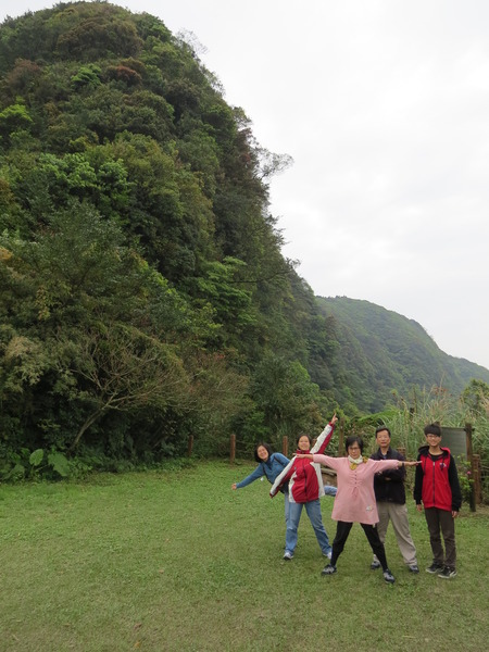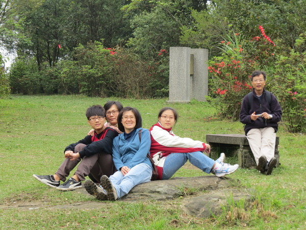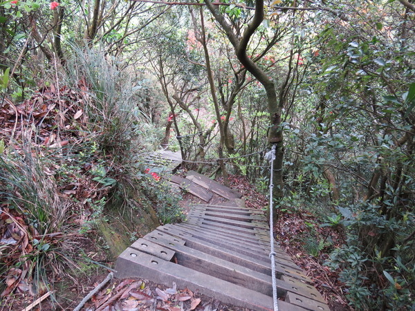 14:00 崖梯下就是綠意盎然的大草坪~「觀獅坪」,這是休息賞景的好地方,草坪邊也有幾棵「金毛杜鵑」。