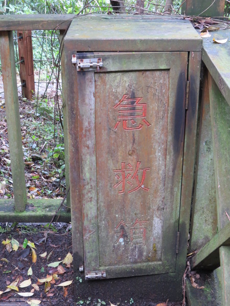 木造平台旁還有「急救箱」,只是裡面的應急物品似乎少得可憐。