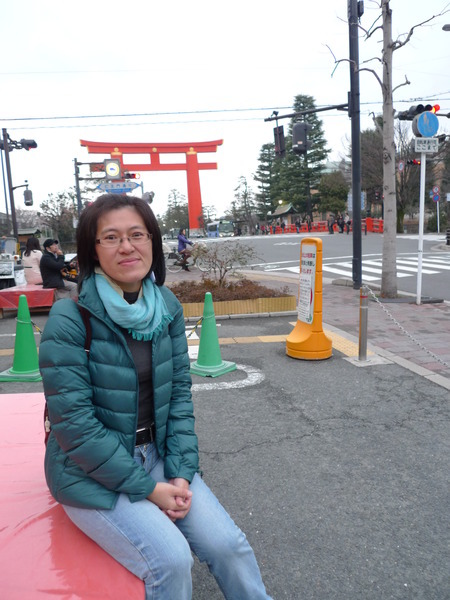 過了馬路就是平安神宮的超大鳥居。京都真是一個奇妙的城市,有現代化的便利,也有古老的傳統;有繁忙擁擠的人潮,優雅閒逸的休憩所也唾手可得,難怪大家都嚮往到此一遊。