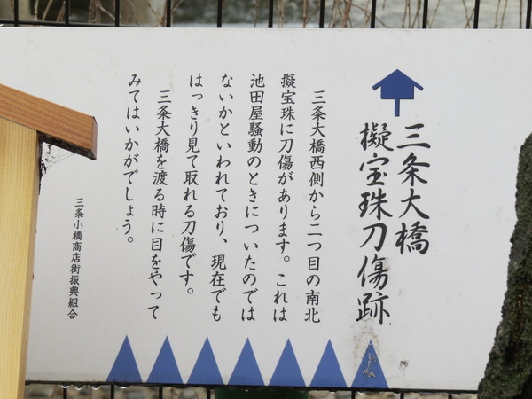 「三条大橋」是鴨川上最早架設的石橋,天正18年(1589年)豐臣秀吉命令增田長盛建造。
