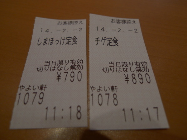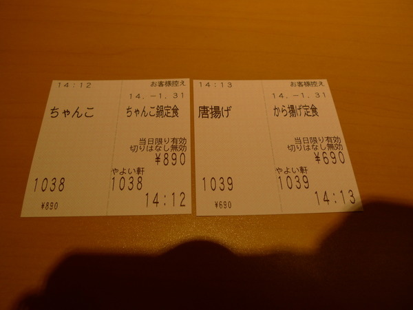 一式兩聯的餐券放在桌上,服務生會取走一半