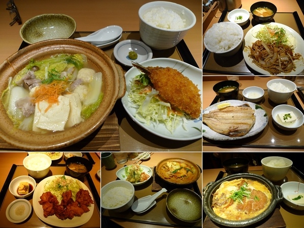 我們很愛「ちゃんこ鍋定食(鹽相撲火鍋)」、「から揚げ定食(炸雞)」、「ミックスとじ定食(綜合)」、「しまほっけ定食(烤花鯽魚)」、「しょうが焼定食(薑汁燒肉)」,下列中間的「チゲ定食」味道很濃,吃到後來很膩。
