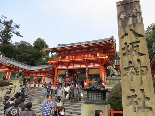 「四条通」向東走到底就是「八坂神社」的「西樓門」,遊客非常多。