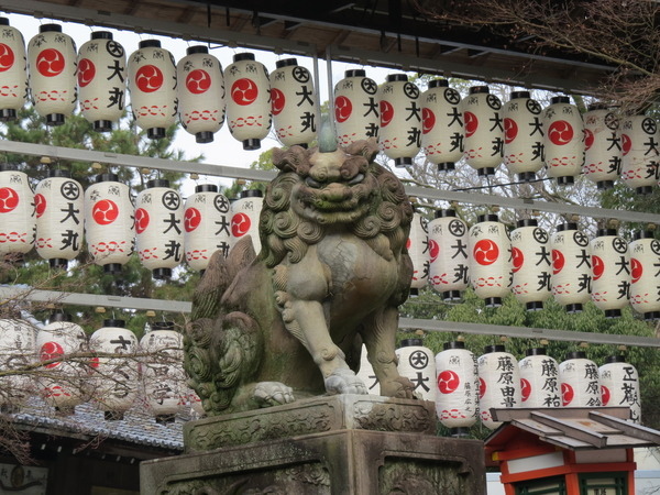 樓門兩旁的「狛犬」,眼神充滿殺氣。