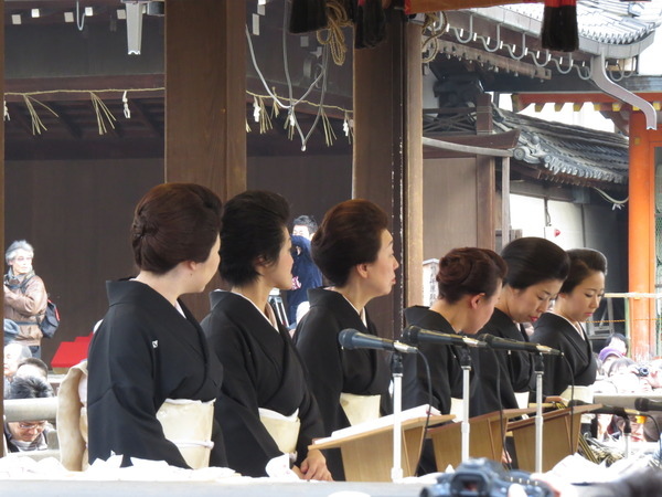 15:00整,「宮川町歌舞會」的奉納舞踊開始~首先,樂手就位(這些就是「藝妓」嗎?)