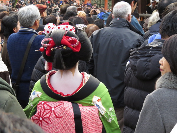 我們不喜歡人擠人,所以站得很遠,沒有搶到任何一包福豆,但是京都藝(舞)妓的迷人風采已領略到了!