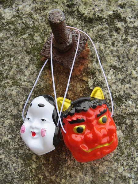 「節分」當天傍晚(今年是2/3),一家之主(通常是爸爸)戴上鬼面具到門外去當鬼(好好玩!),另一個家人(通常是和當年生肖相同的一位)對著外面的鬼(爸爸)撒福豆,嘴裡念著「鬼は外,福は內(Oni wa soto,Fuku wa uchi)」咒語,最後再全家人一起吃掉和自己年紀數量相同的「福豆」,這樣不只可以驅鬼納福,而且一年都不會生病。
