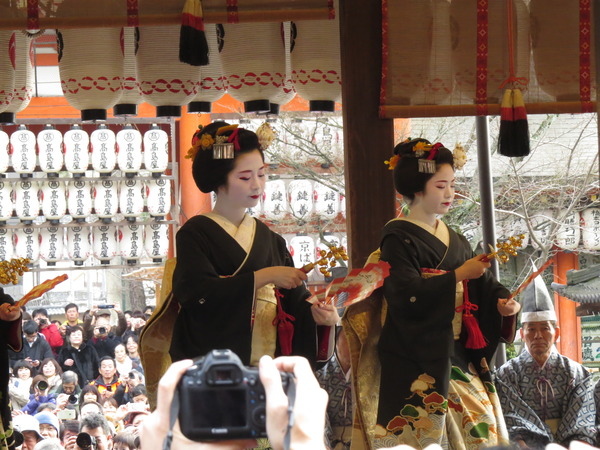 人超多的,要在「舞殿」和「本殿」之間觀賞,才能看到舞妓的正面,真的舉手投足都很美!