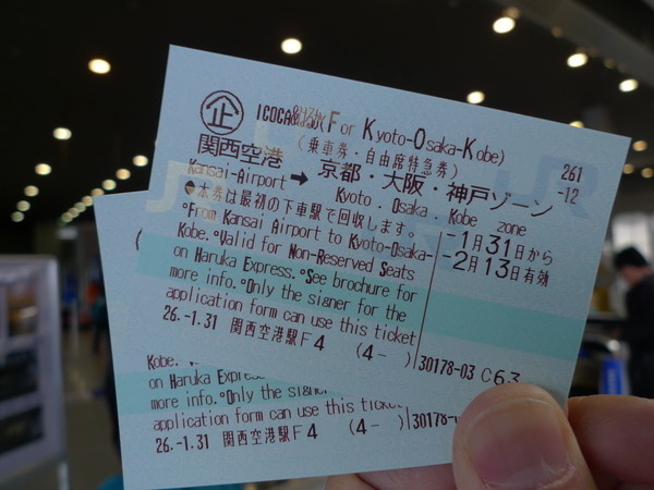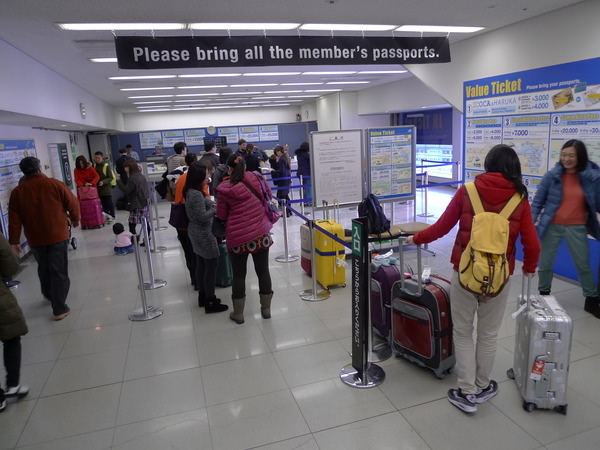 排隊等候時,會有中文服務人員來詢問購買的票種和數量,幫忙寫好訂購單,拿著單子,準備好護照、4000円/人到櫃檯購買,「特急列車Haruka」來回票+¥2000円的「ICoca」就入手了。