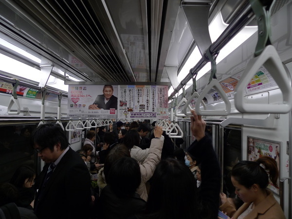 地鐵「烏丸線」人好多,拖著大行李搭地鐵不太方便。