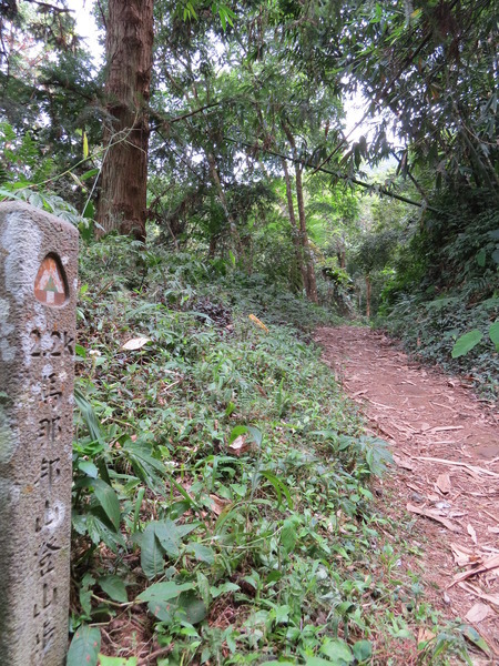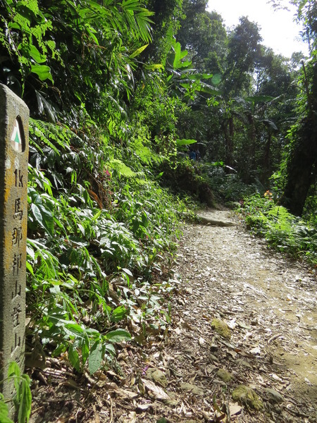 山徑口有「馬拉邦山登山步道2.2km」石樁,,之後每隔100公尺就會出現一次。