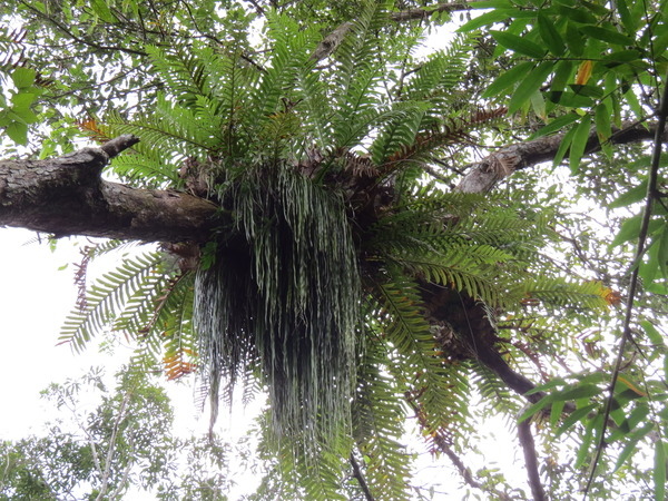 樹幹上附生著鳥巢蕨外,還生長著不常見的「書帶蕨」。