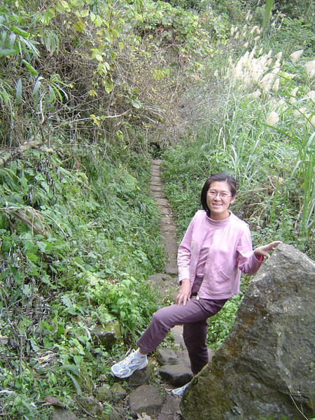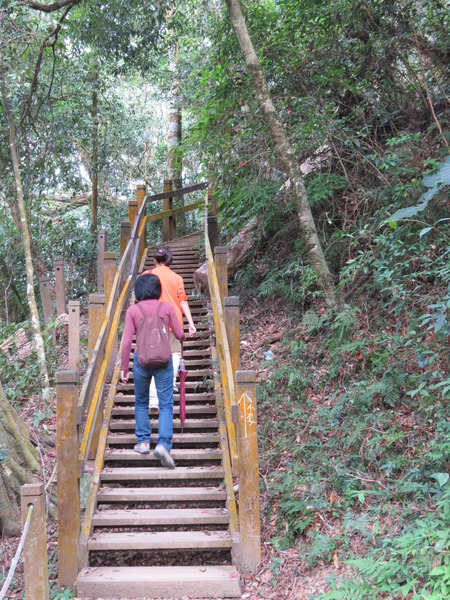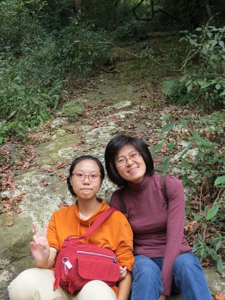 賞楓完畢,離開大石壁,繼續登頂,綿綿不絕的樓梯,融融不怕爬山,就怕樓梯,慘叫不斷!
