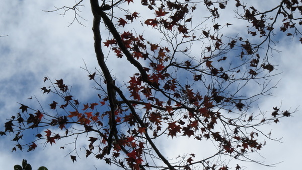 往上找去,楓樹又高又遠,紅葉已經掉得所剩無幾。