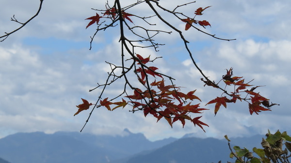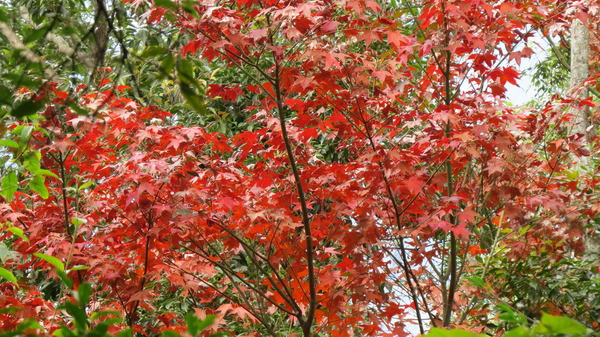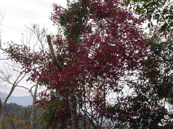 這是今天見到最紅最漂亮的一株楓紅,可惜在山崖邊,無法接近。