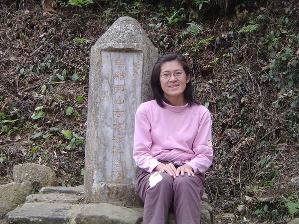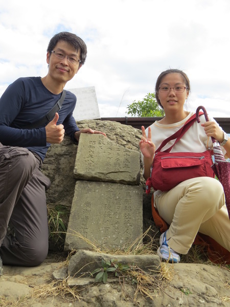 三角點後方是斷成三截的石碑,最上面一截已經不見,現存的兩截中,仍然可以清晰看見「昭和六年八月(1931年)」「南湖青年團」字眼,Google一下,得知這是為了悼念明治35年(1902年)的馬那邦山戰役。