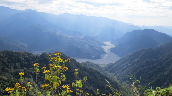 觀景平台對面是雪霸聖稜線(已被白雲遮蔽),腳下是源遠流長的大安溪上游。