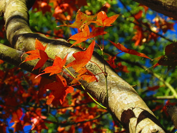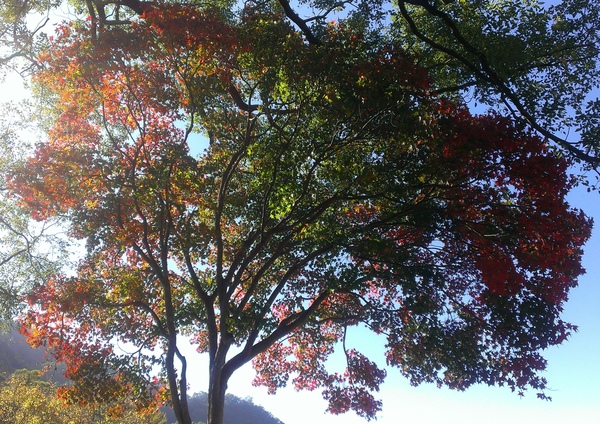 說實在的,石門水庫最有看頭的就屬進收費亭後右側的兩棵青楓,去年與SY一月初時同遊,正好遇到楓紅(以下照片為2012.01.02拍攝)。比照此時的狀況,果真是還沒到最美狀況。不過某些枝葉還是紅的很美了此時陽光正好,那就換個角度,逆著光,來欣賞光線穿透紅葉帶來的色彩。