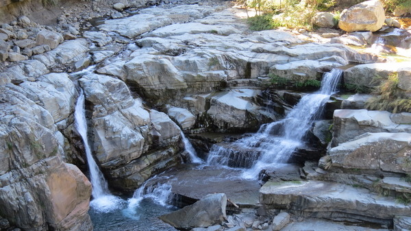 下了階梯就是神仙谷。雖然立著紅色警告牌,但是沒寫日期,應該只是立著以備不時之需,放步往下走。