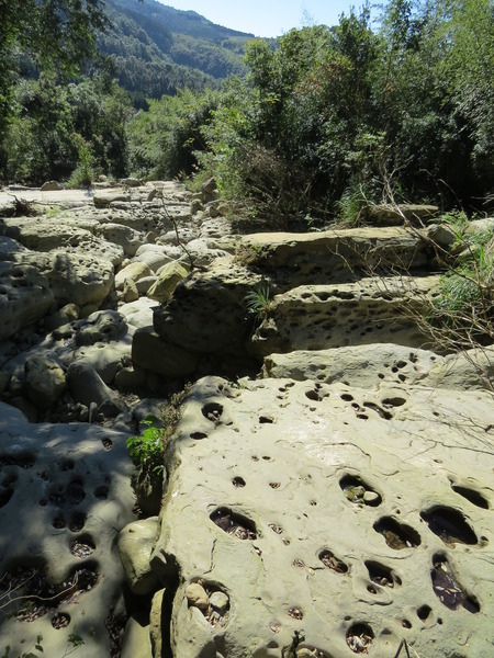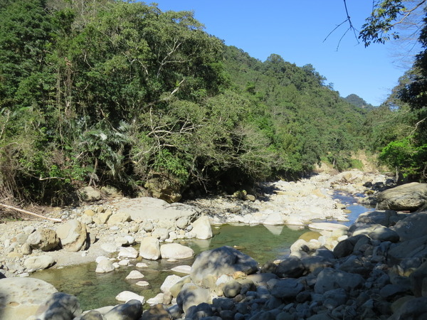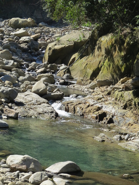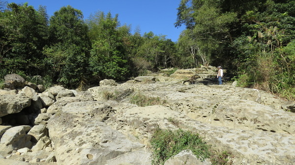 蓬萊溪最有名的壺穴群就是大坪這裡的「月球石」,我們往上爬、爬、爬,看不到「月球」的盡頭,聽說綿延2公里之遠,決定回頭。