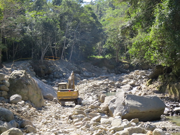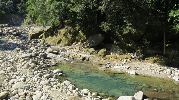 怪手邊的蓬萊溪依然清澈縹碧
