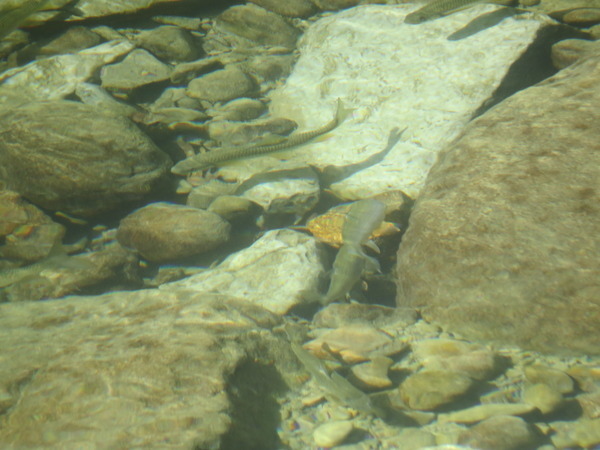 魚,是魚,又叫「水中螢火蟲」的「苦花」!!而且不小,魚群沒有因為風災而遭殃,太好了。