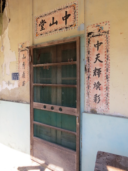 步道旁一間叫做「中山堂」的土角老厝,堂號和對聯都是雕刻的,不是貼的,而且還有花邊裝飾,工法細膩古雅,偏僻的山間竟然藏著這樣的古宅,令人驚豔。