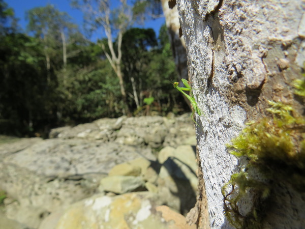 樹上一隻螳螂,綠得很醒目。