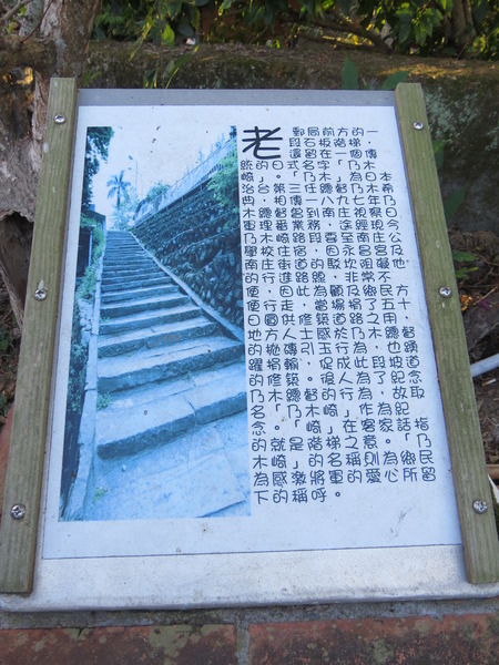 日據時代,第三任總督乃木希典來這裡視察,捐了50日円之後才有這條石坂階梯,因此以他為名。