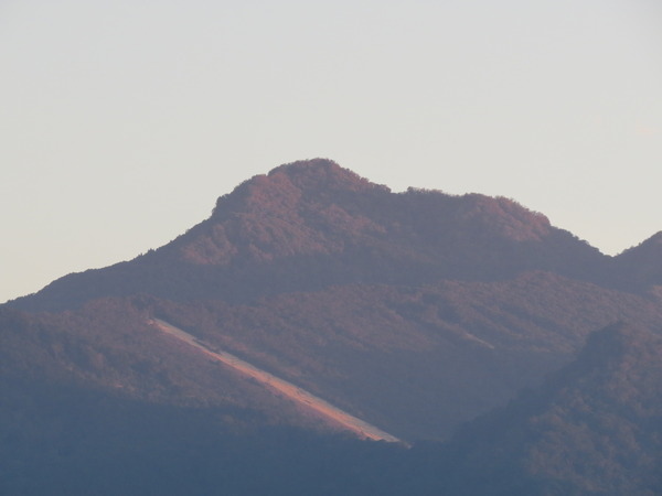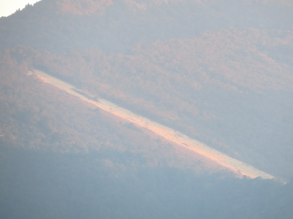返回取車的途中,望見遠處山頭已被染成金黃,太陽準備下山了,我們也準備打道回府,但是,山上一道白色的直線是什麼??