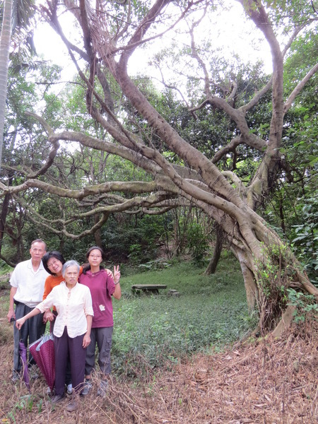古厝改成的公廁對面這棵榕樹是橫著長的,非常奇特。