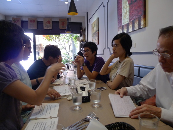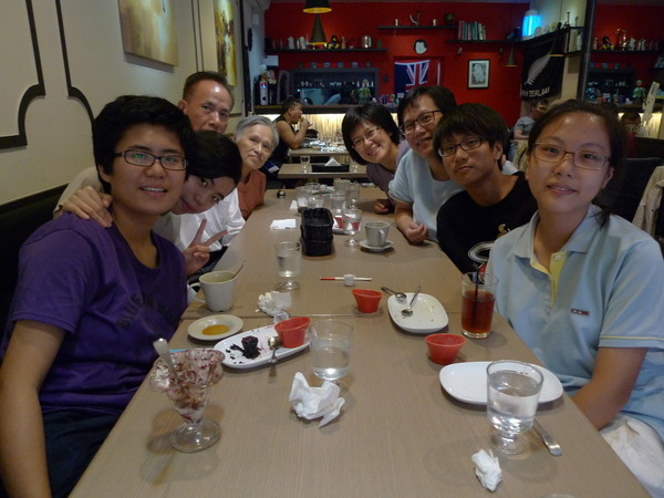 星期六中午,小小的家庭式餐廳幾乎客滿。我們吃飽時,主廚特別抽空出來和我們閒聊,大意應該是詢問我們對料理滿不滿意,然後說他在廚房看到我們吃得很開心,我的英文本來就不好,紐西蘭腔的英文更是難懂,二姐此時又尿遁去也,英文系的小姐姐故意裝聾作啞,一桌人忽然陷入沉默,不知如何回應才好,於是對話就在大姐姐的「delicious」之後,以尷尬傻笑結束,主廚悄然回到廚房。