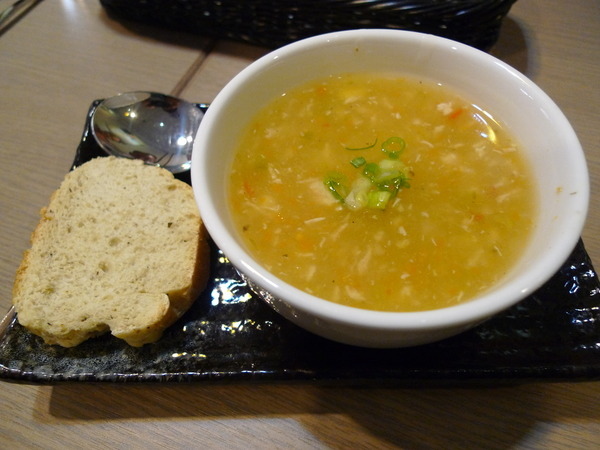 不愛西餐的老爹邊喝邊點頭,服務生美眉建議麵包沾著湯一起吃更美味,我個人覺得麵包太乾了。