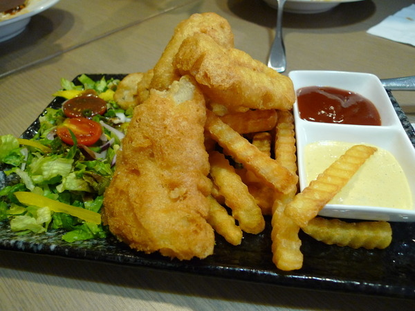 這兩道外觀和味道都差不多,只是「漁夫的魚籃」除了炸魚之外,還多了炸花枝和淡菜,但是我們這些大人都只吃到炸魚,其他的都被小朋友掃光了。酥脆的麵衣包裹著軟嫩又有彈性的「魴魚」,吃魚專家二姐一吃就說:這應該是挪威來的,因為油脂夠厚肉質才會這麼細!薯條也很好吃,但是李餐廳的份量更過癮。