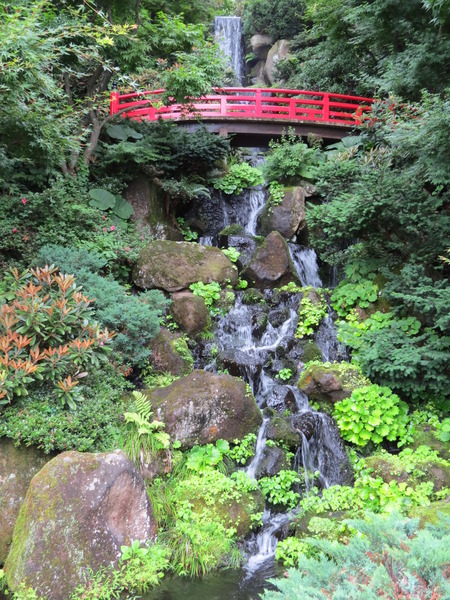 沿著步道拾級而下,經過假山、瀑布、小橋,來到「低地」,景致又完全不同。