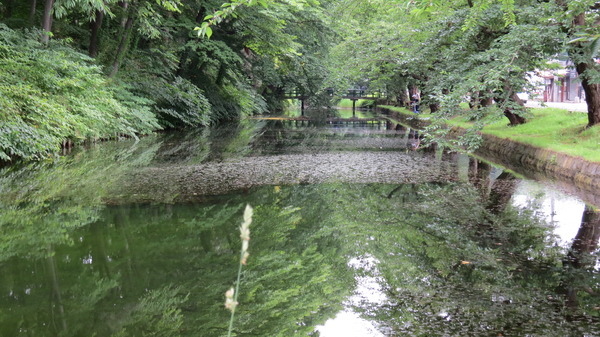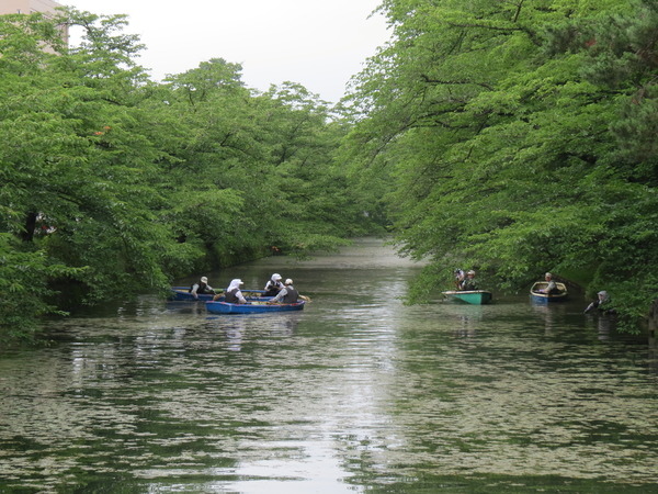 午後的弘前公園到處都遇到辛勤整理環境的工人,護城河(外濠)中好幾艘小船正忙著整理生長過盛的水草。